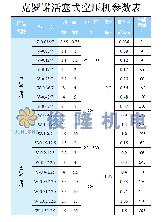 克羅諾活塞式空氣壓縮機